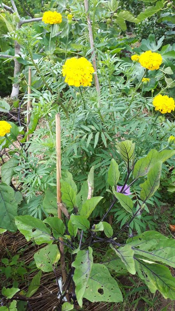 🍆茄子とマリーゴールド、ししとうも一緒に😉コンパニオンプランツ😊👌