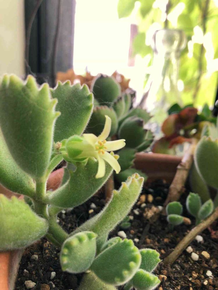 挿木にしていた熊童子が花をつけました。かれこれ4年くらい育てていますが初めて見ました。親苗ではまったくそんなそぶりなかったのに。