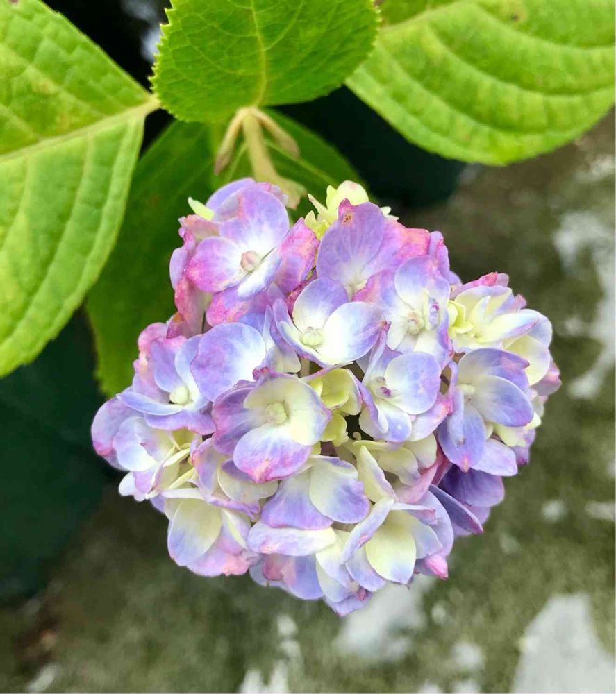 剪定した枝から新芽が伸び、小さな紫陽花が咲きました。