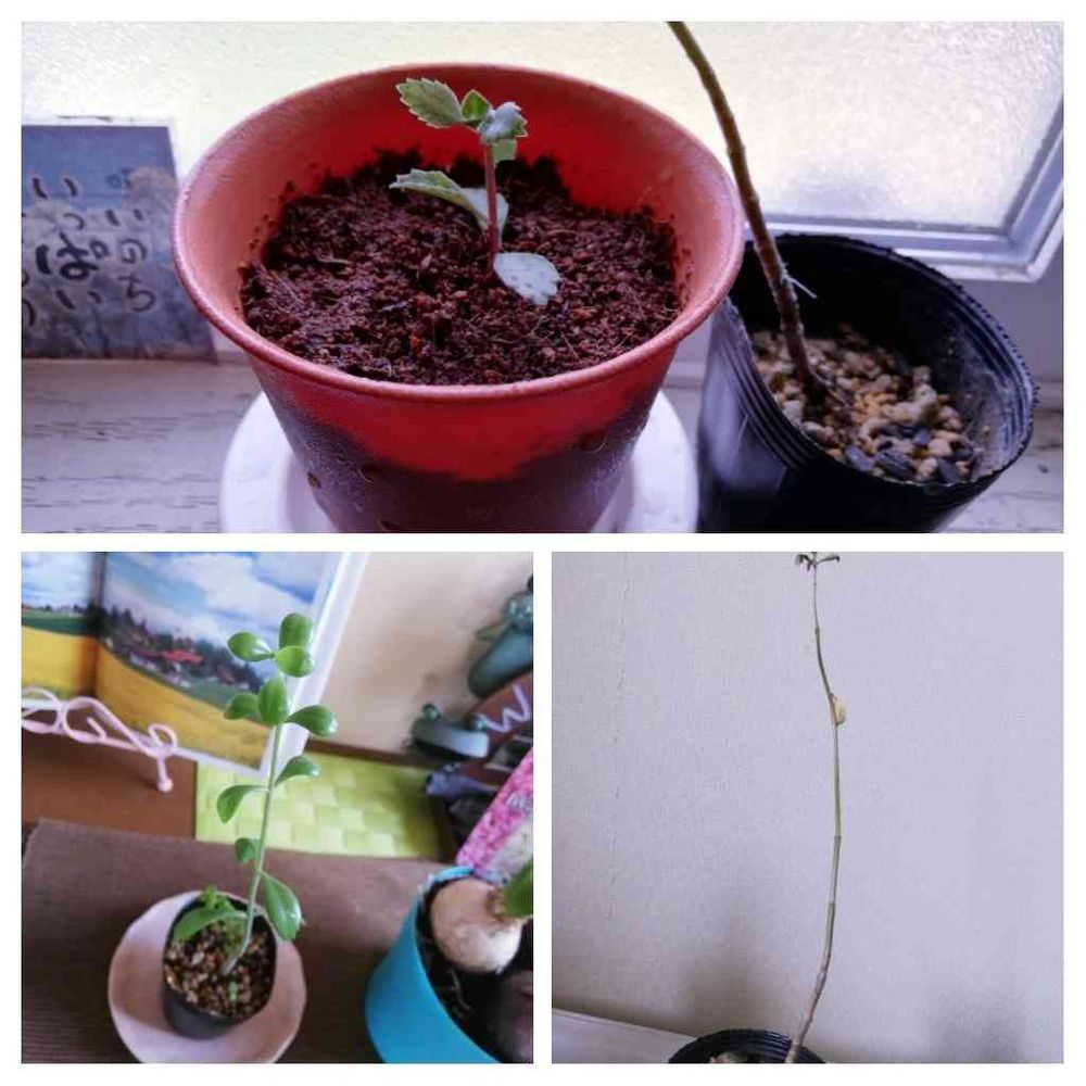 『上』7月に上の所だけに葉が出てきて根も出ていたので思いきってチョッキン✂️して鉢に植えて見ました。初めてなのでどうなるか見守り中です☺️
