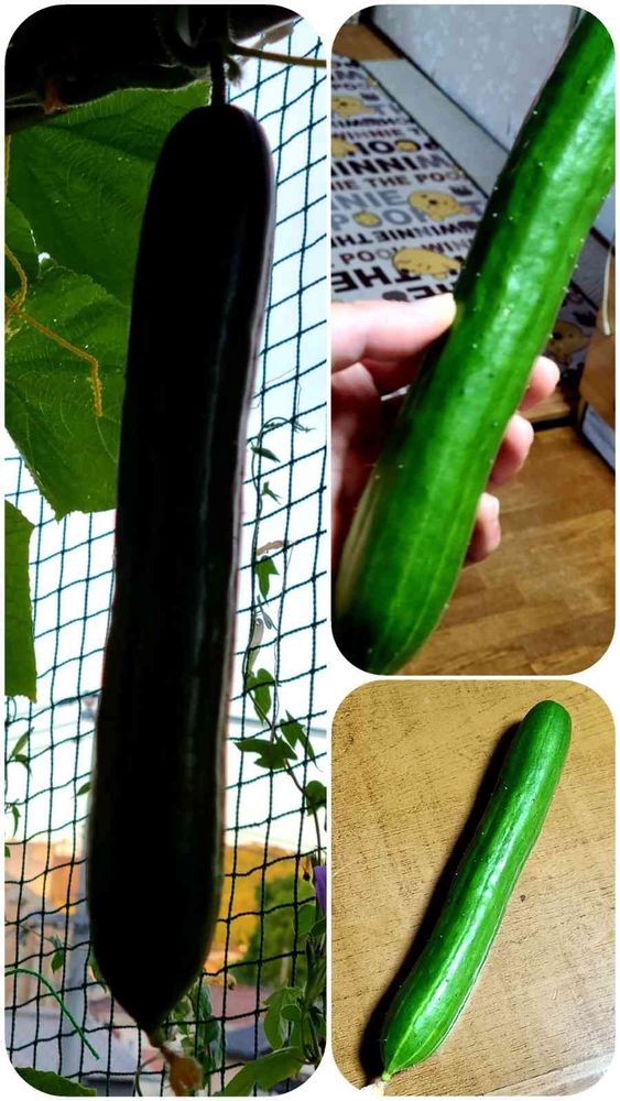 キューリが育って、孫っちに見せたかったけど、いつ来るかわからないので収穫🥒ここまで出来たのは初❣