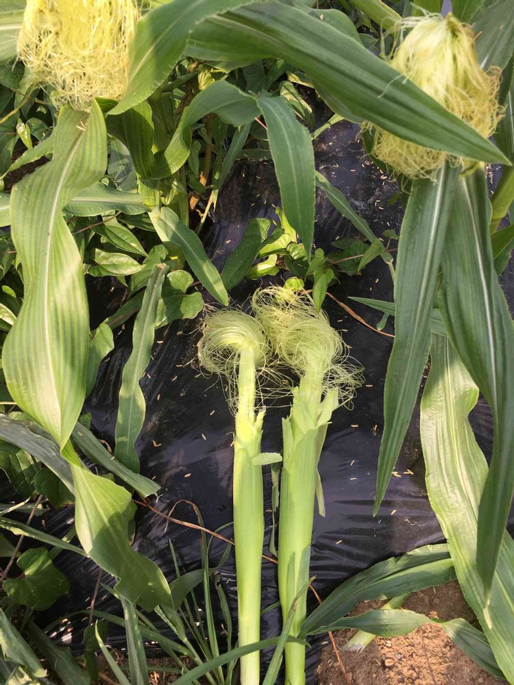 ホワイトコーンのヤングコーンを収穫。昨日の4本は生とグリルで蒸し焼きに。今日の2本も蒸し焼きで食べる。