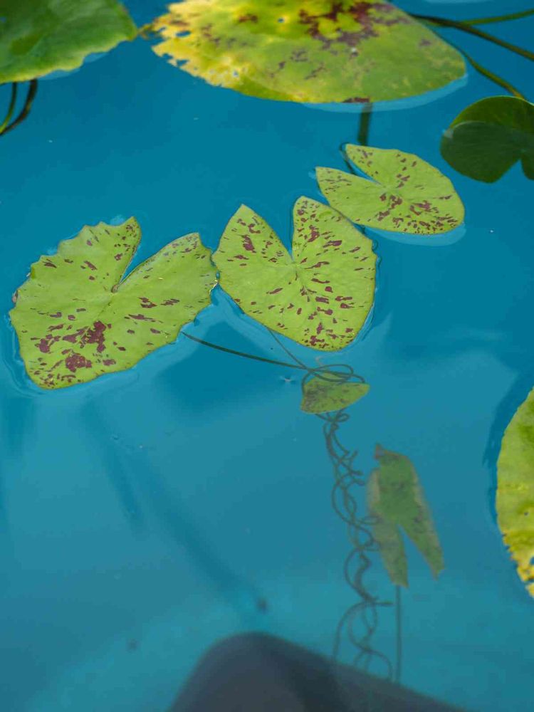 過密コンテナで温帯睡蓮の葉に邪魔されてほとんど日が当たらなくなってたのと、株が増えてたので今日植え替えして120Lの角タライに引越させてみました♪