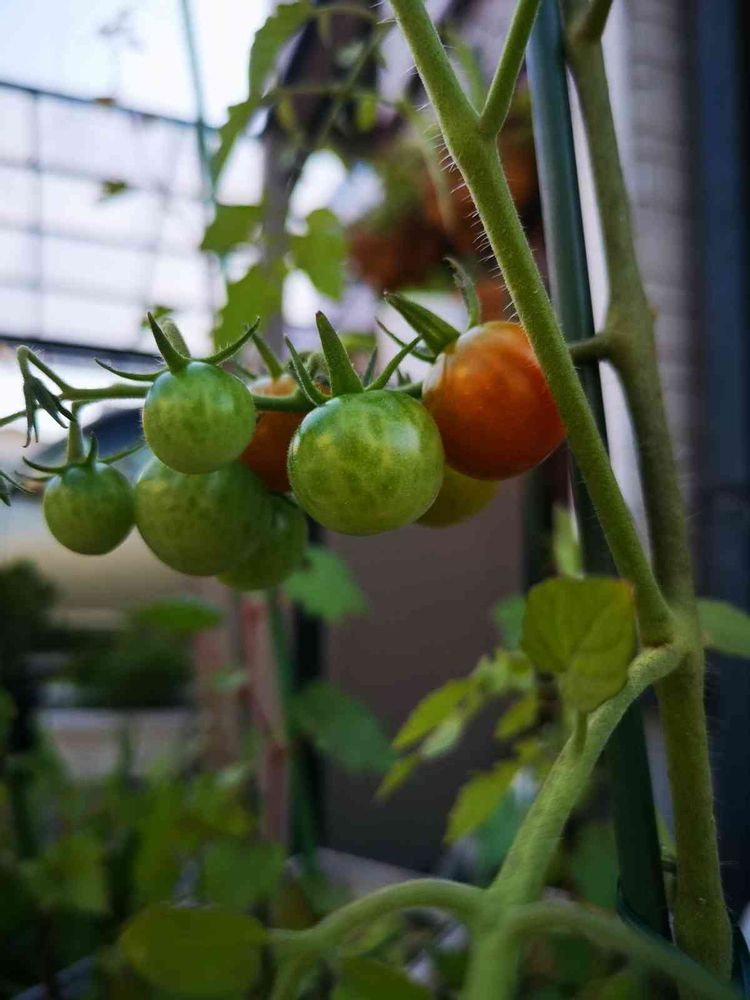 さっきpicしたバジルの隣で頑張ってるミニトマト🍅がやっと色づいてきました😆🎶✨