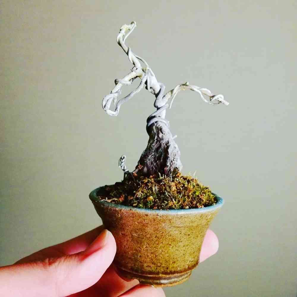 ヒョロヒョロと伸びた枝の、一番根本の芽のところまでとりあえず切り詰めた状態です。なるべく小さく作りたいところですが、ここからどうすればいいのか、全く構想がありません。