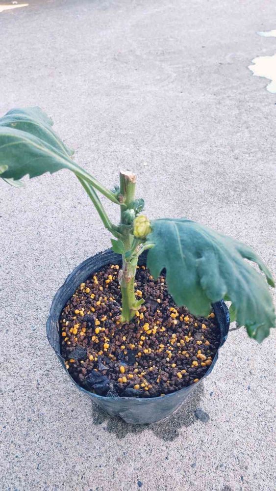 切り花の大輪グリーンマムを挿し木したら根がついたので、鉢上げしました。