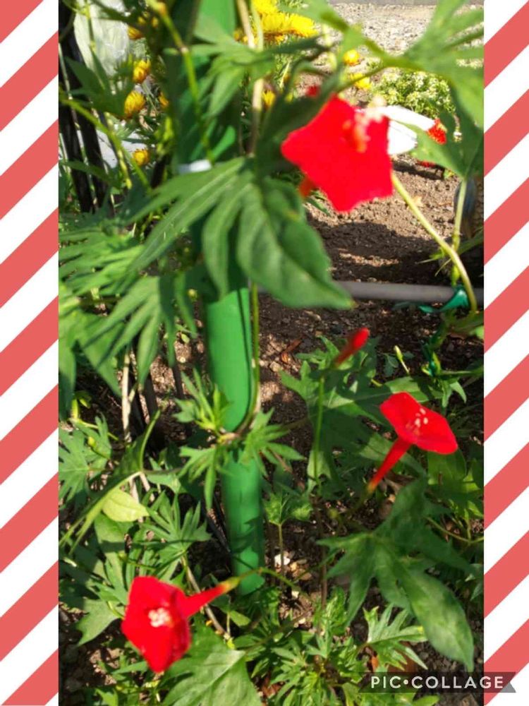 ルコウソウアサガオの為に設置したトレリスに絡んで咲いてくれました😆🎵