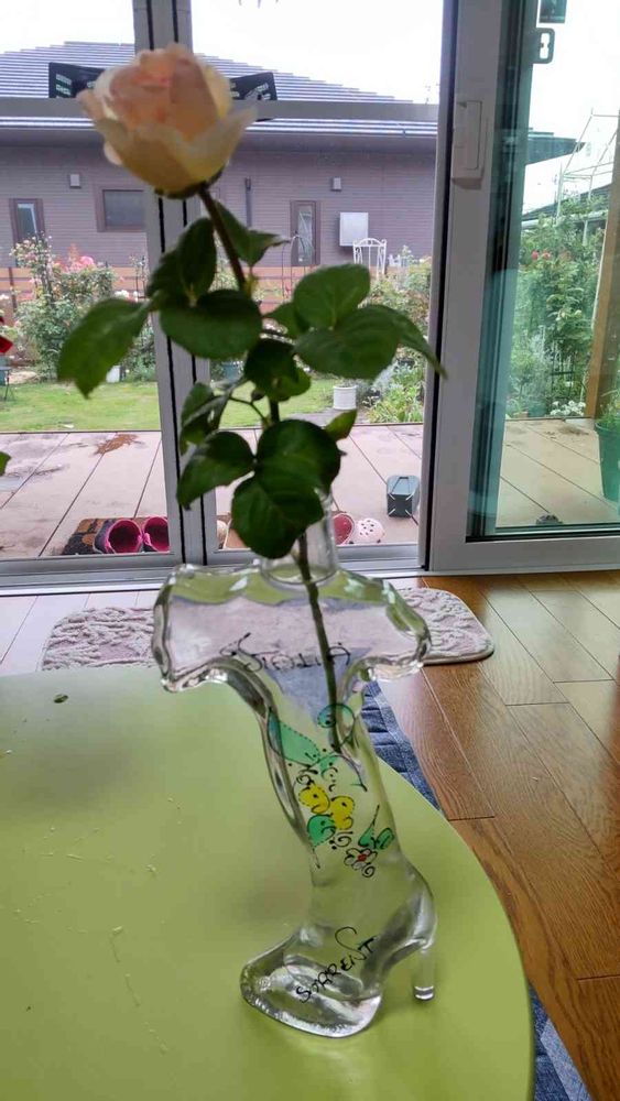 面白い花瓶だね‼️バラ🌹が引き立つね😃