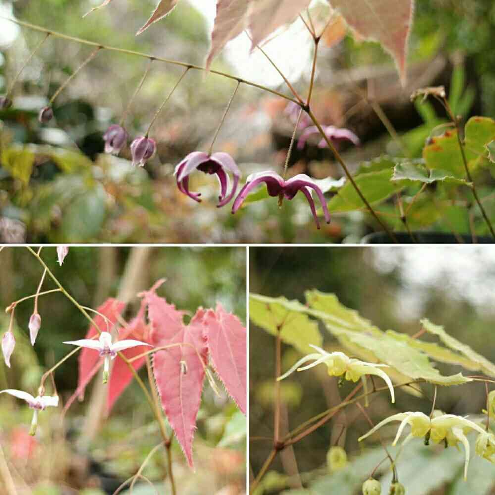 いずれも中国産のイカリソウで花色も花形も葉っぱの色も様々で棚が賑やかです(*^^*)