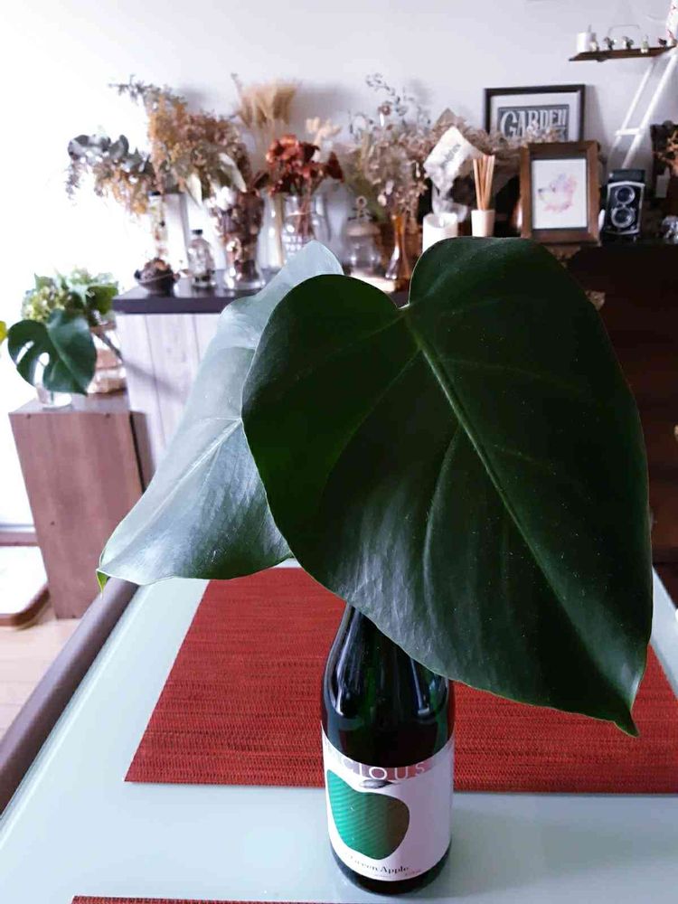 切り落としたモンステラ、素敵に飾ってらっしゃいますね🌿ボトルもおしゃれです😊👍️