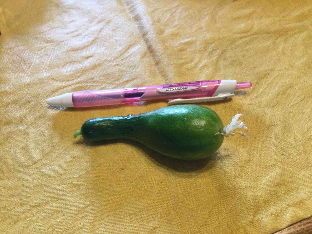 今晩はー🤣🤣🤣ヾ(≧∀≦*)ノ〃可愛いです。まるで、ひょうたん💚のようなキュウリですねえ(*´∀`*)シャープペンと同じくらいの大きさ💕💖愛嬌たっぷり(*^O^*)