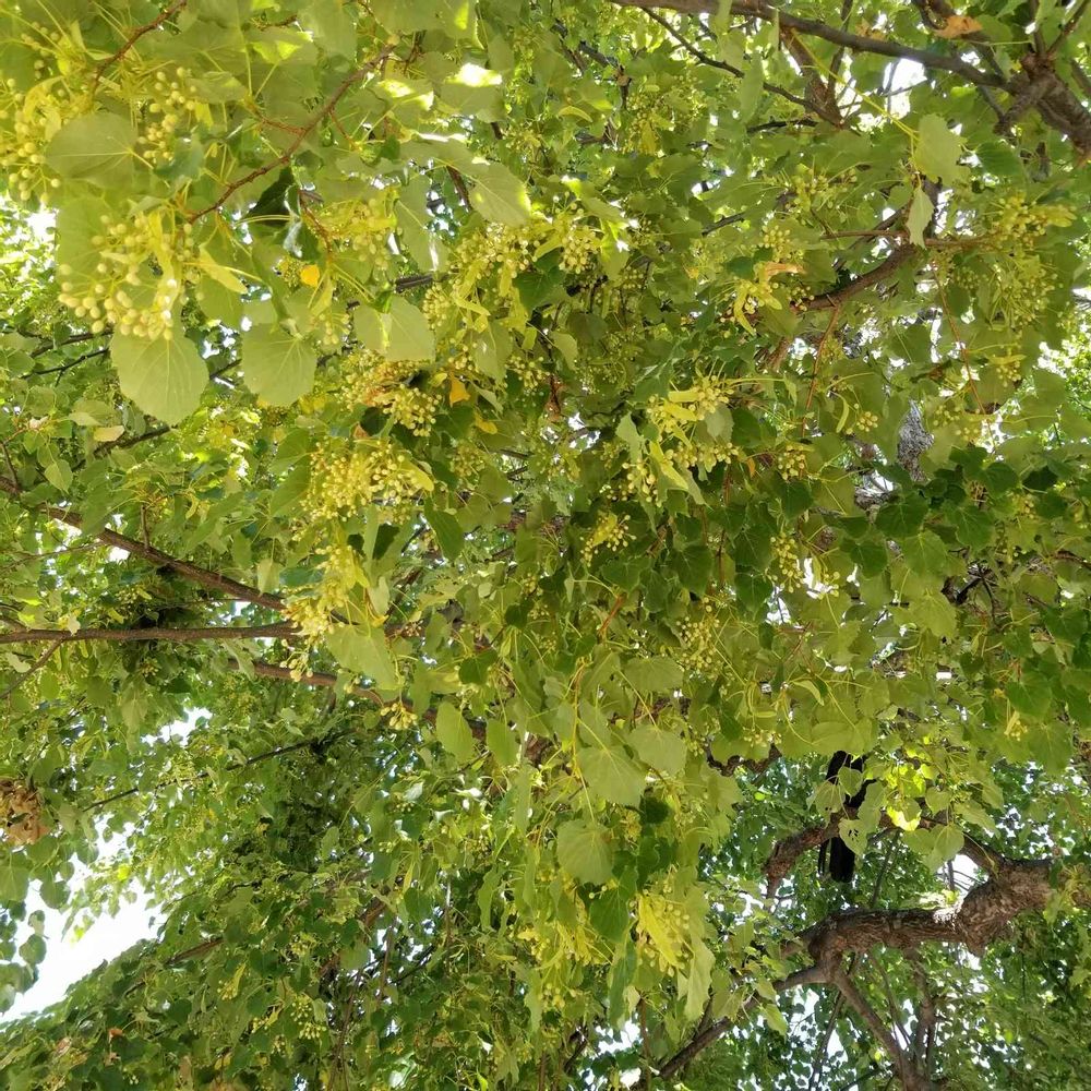 ボダイジュ(菩提樹) の木陰が最強に涼しい。札幌 現在30℃。もうこのベンチから動かないんだから。見上げた景色。