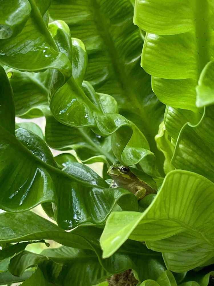 うちの庭にも 殿様カエル一家が ピョンピョンしてますが、茶色だから 映えない😅 オチビさんは 気をつけないと