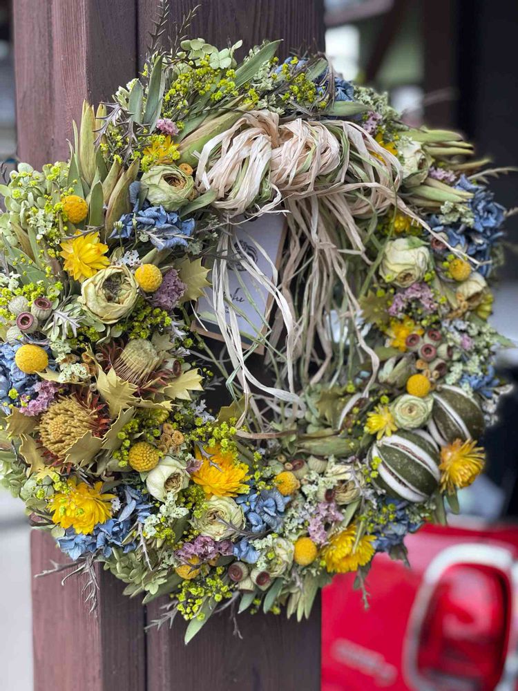 季節の草花をドライフラワーにしてスワッグやリースを作っています。