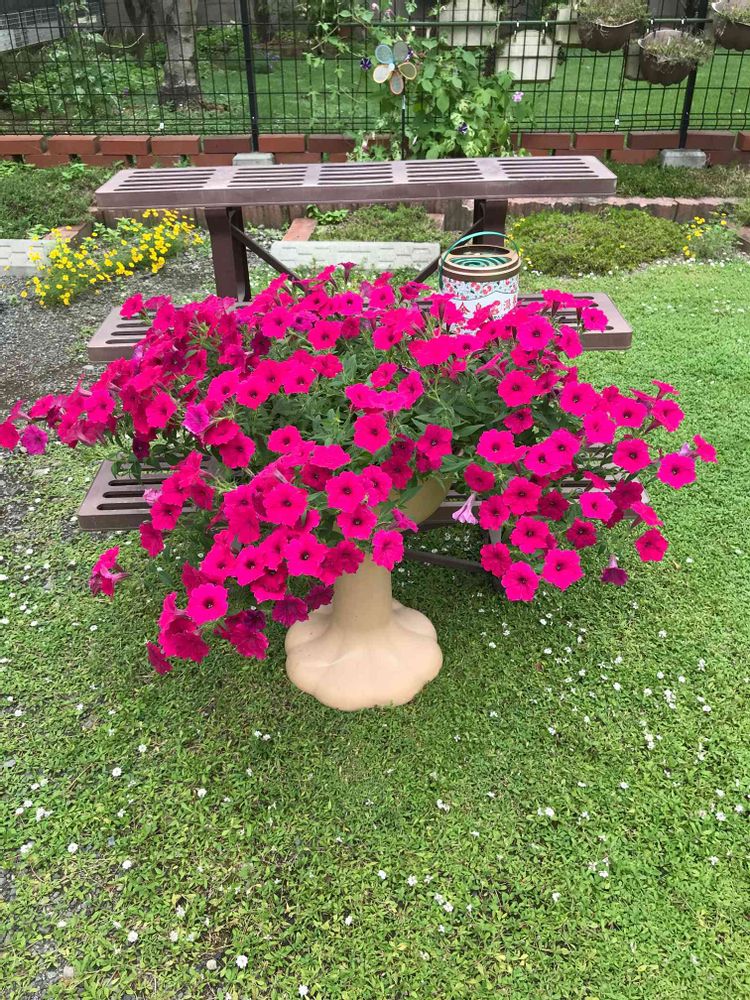 いつの間にか タフチュニアのパープルの親株さん こんなに 成長してました😄
