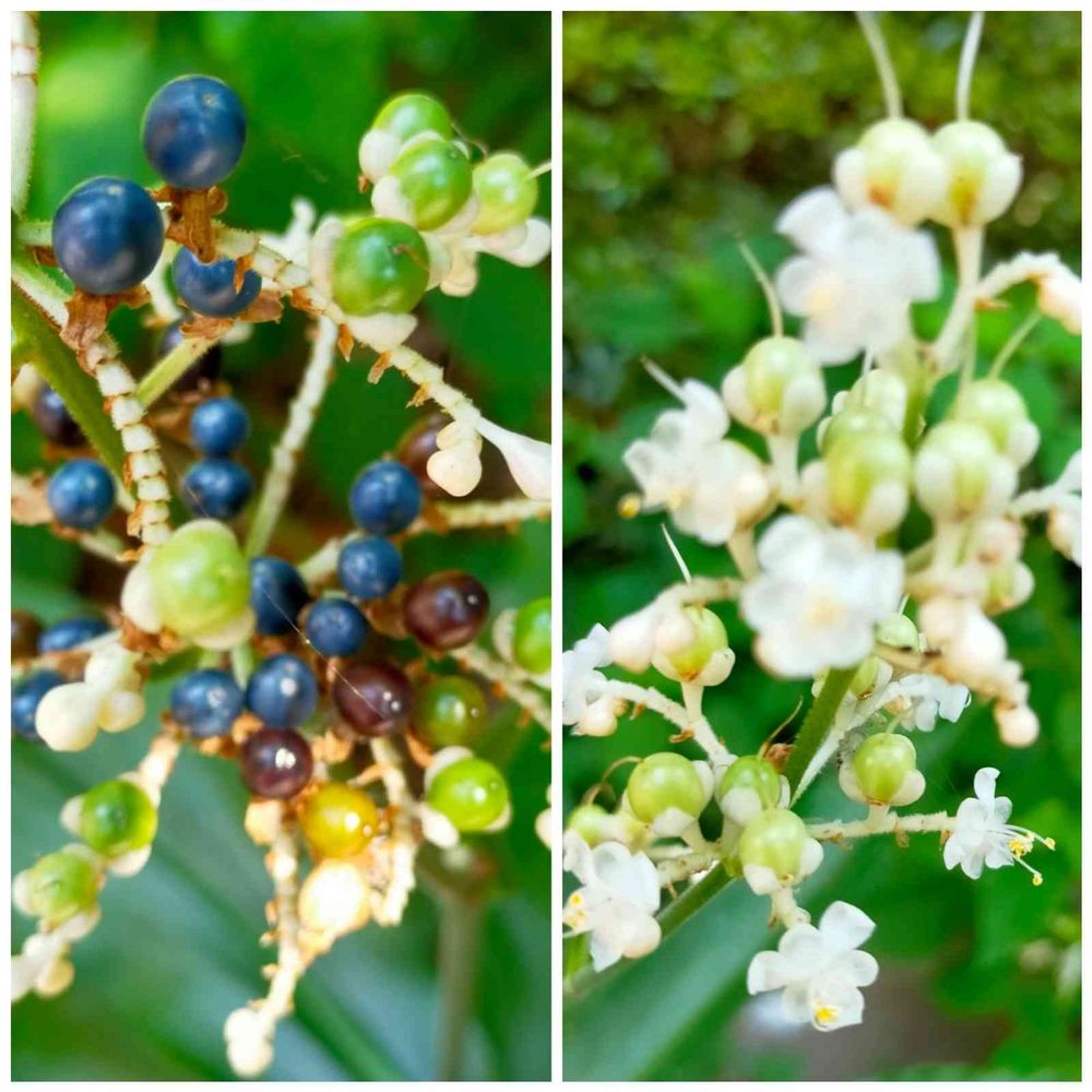 白かったヤブミョウガが、もう藍色や緑色に色づいています😳🔵🟢🟤