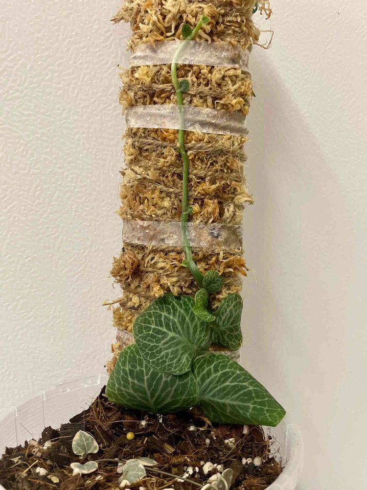 クリプタンサは張り付いて上に向かって伸びるので水苔でこんな物を作ってみました。