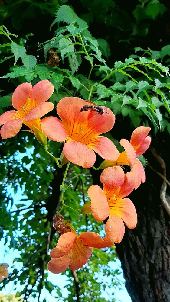 ノウゼンカズラ,セミの抜け殻,蜂(はち)の投稿画像