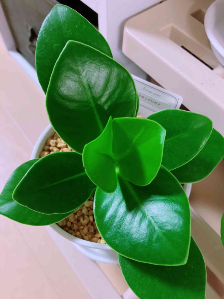 葉っぱがとても肉厚でツヤツヤ。脇芽もどんどん出てきて毎日の観察が楽しいです ♬︎*.:*