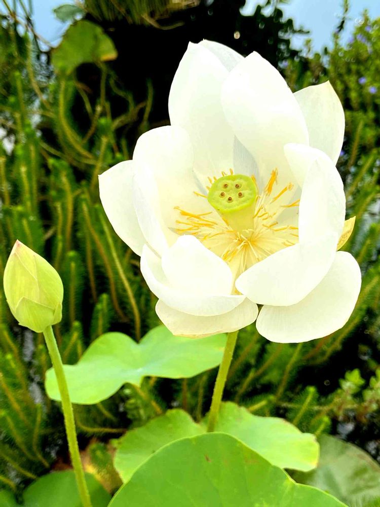 涼やかで爽やかな真っ白い蓮のお花、綺麗ですね~✨