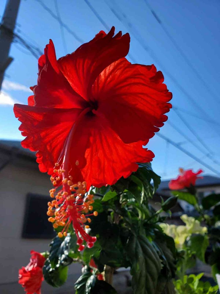 玄関,青空。,ハイビスカスヘップバーンレッドの投稿画像
