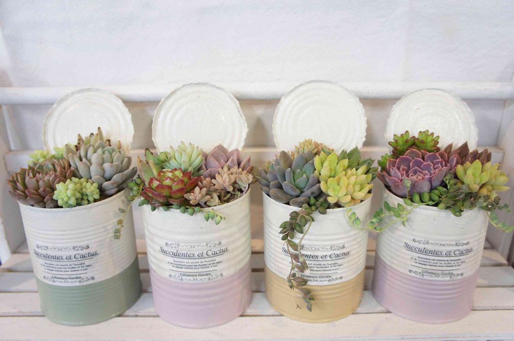 リメ缶の色に合った寄せ植えを作るようにしてます🍀