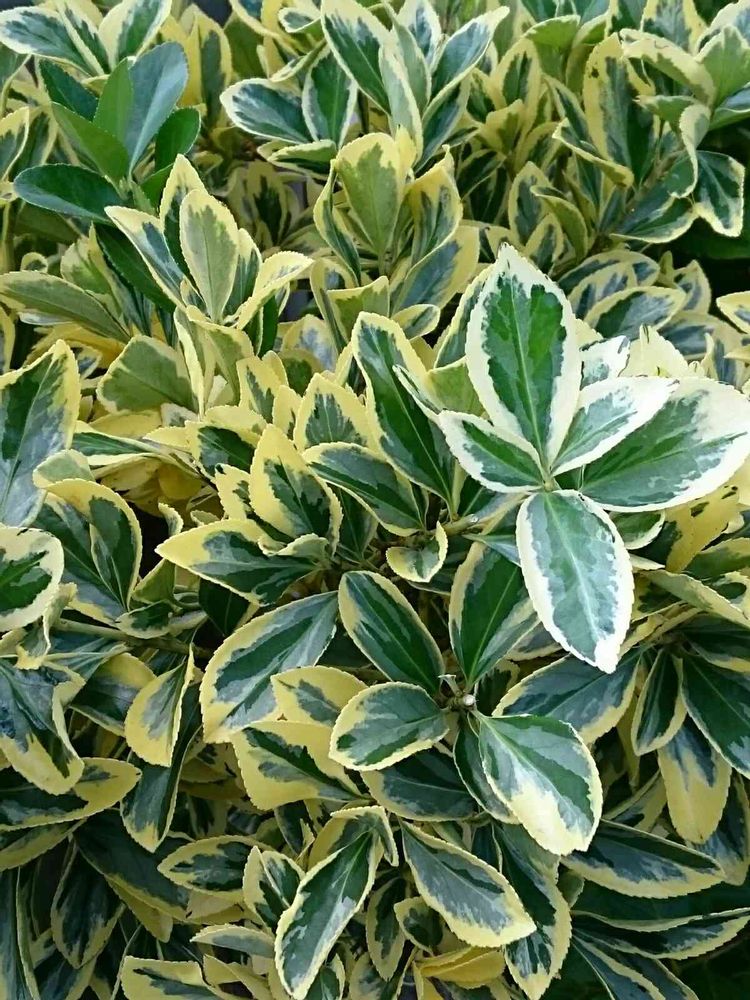 緑の葉に黄色の縁どり、たまに緑に白が出ることもあります。暑さにも負けず生い茂っています。