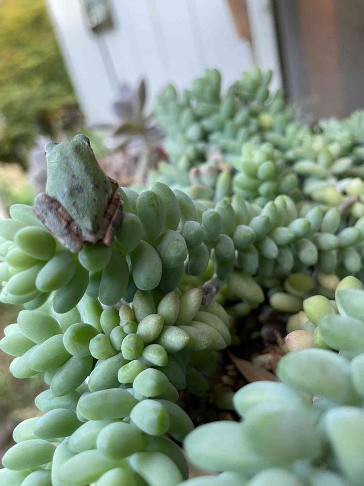今日も暑いなぁ〜って思いながらビアホップの上で涼んでるカエルくん見っけ💚