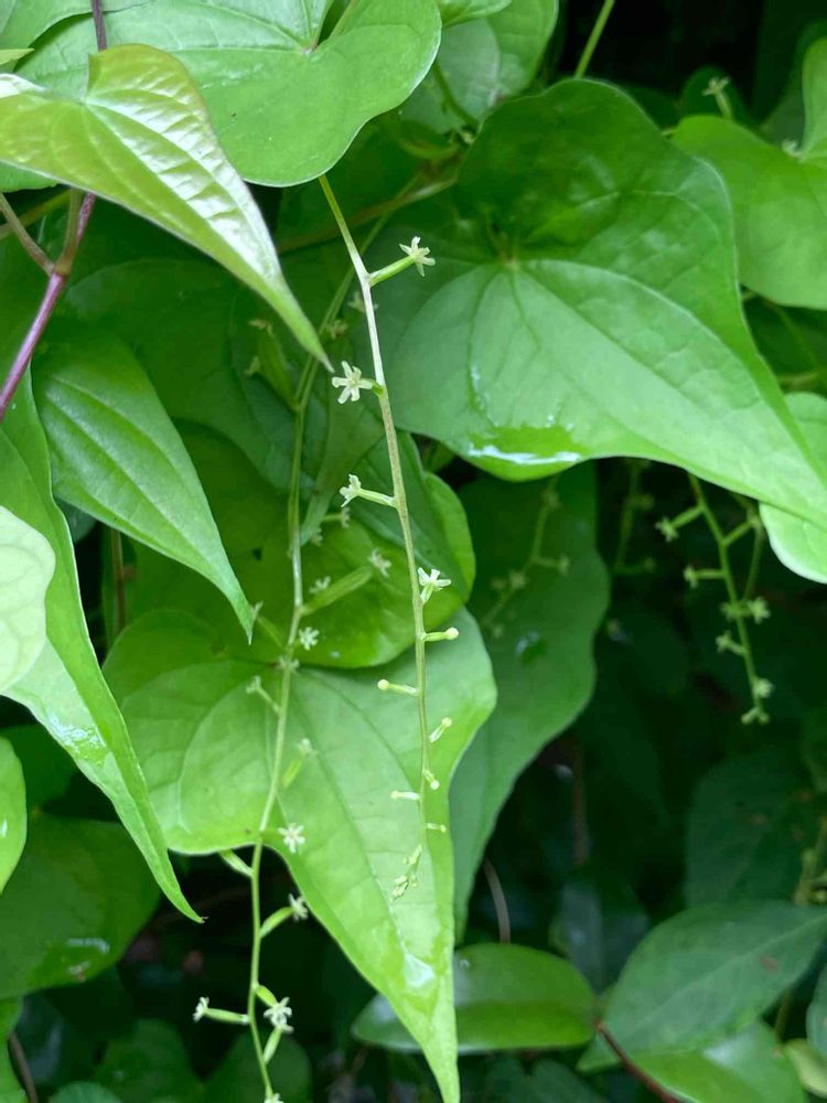 ヤマノイモの雌花は白くて蕾のようなままで、オニドコロの雌花のように開かないと分かりました。よってこれをオニドコロの雌花と訂正します🙇♀️