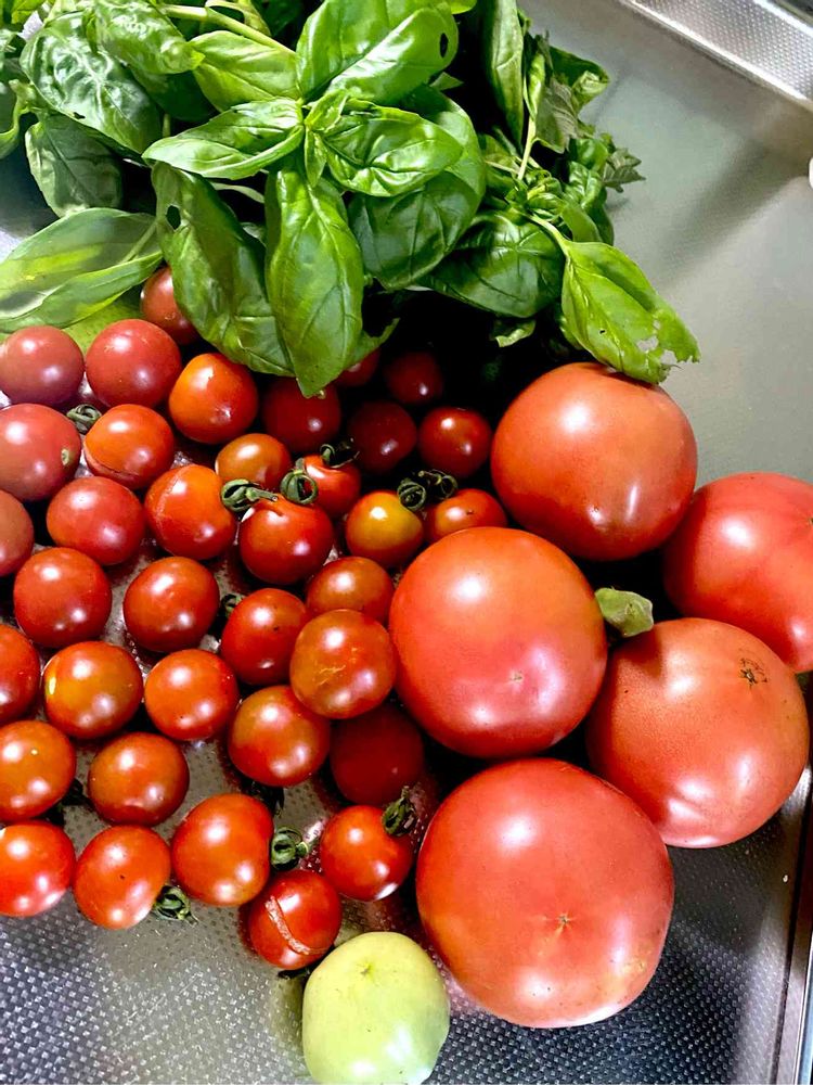 注 手前の緑の小さなトマトは 昨日の雨で落ちたもの。かわいいので仲間入り🤳
