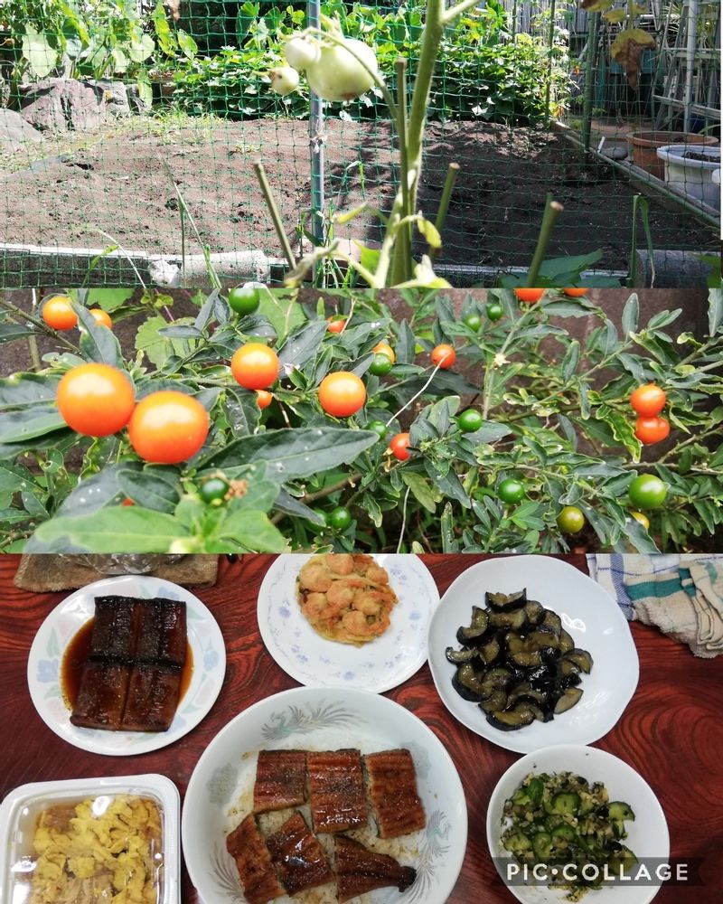 畑のトマトは終わったけど 脇芽を 挿した トマトに実をつけています ビッグボーイも色づいてきています そして 一人暮らしのおじさんの遅い昼食 水曜日だけど どようの日と 言うことで うなぎを食べました たまにだから 罰は当たらないと思う🤭