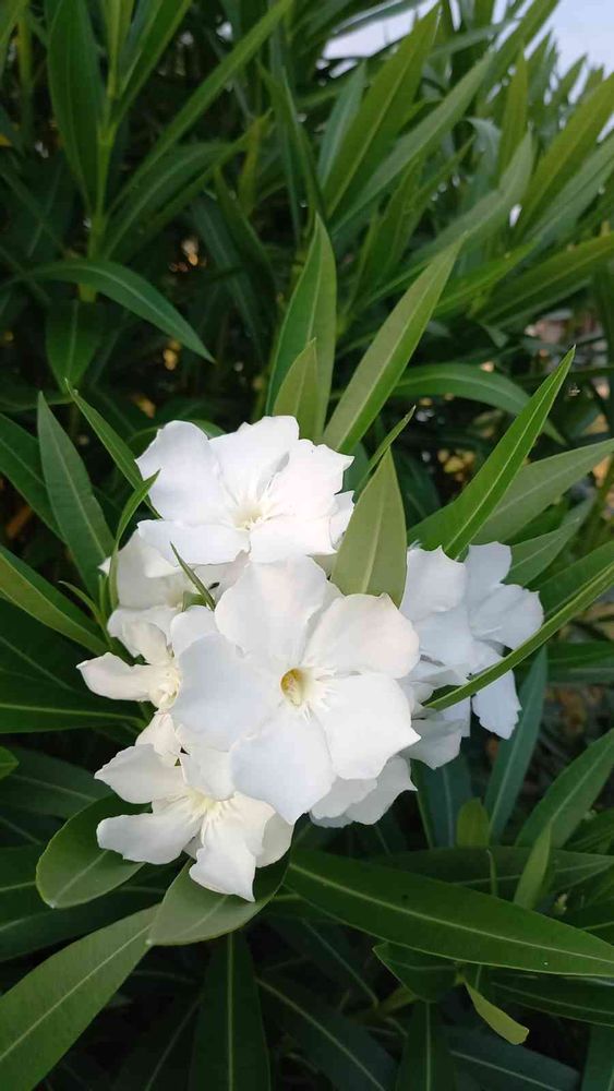 @ららのひげ さん、ありがとうございます。夾竹桃、キョウチクトウですよね。私自信がなくて。百日紅とごっちゃになって。赤とかピンクもありますね。白は初めてでした。夏らしい花木ですね。