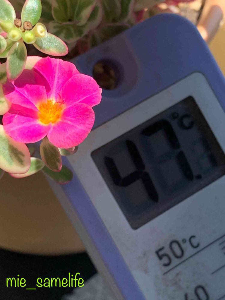 オリンピックも暑いですが、ベランダに置いてある気温計が、47.1度😵