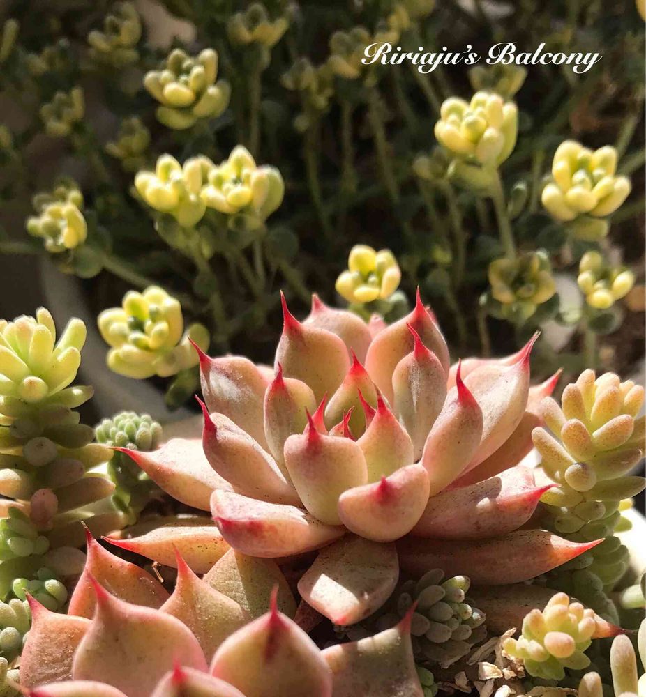 この前のピンクザラゴーサと思われる子は爪だけでなく葉っぱ全体が赤っぽくなってきました😊✨斑入りタイトゴメがお花畑みたいに見える😃💕