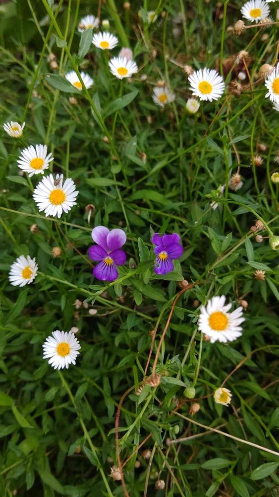 エリゲロンの中で、小さなビオラが咲いていました💜こぼれダネで芽を出し、こんな時期でも、花を見せてくれてありがとう😆💕✨