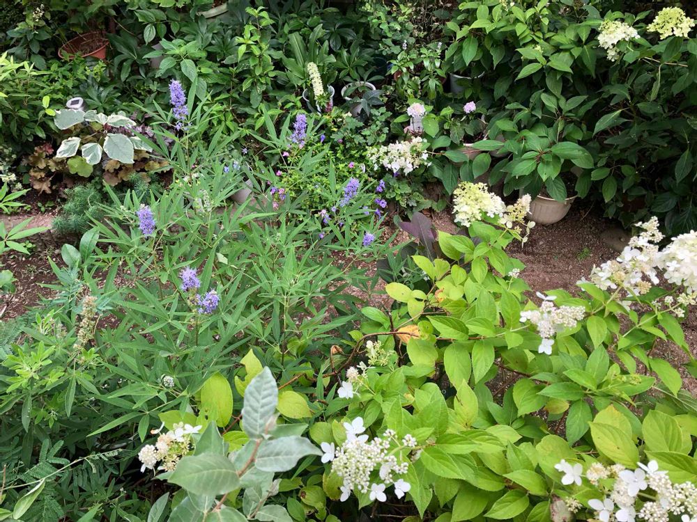 外ではニンジンボクの紫と紫陽花の白が涼しそう💜