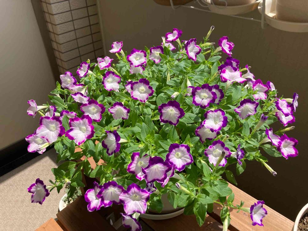 サフィニアアートの江戸絞りが、1番元気。切り戻しても復活が早い😊