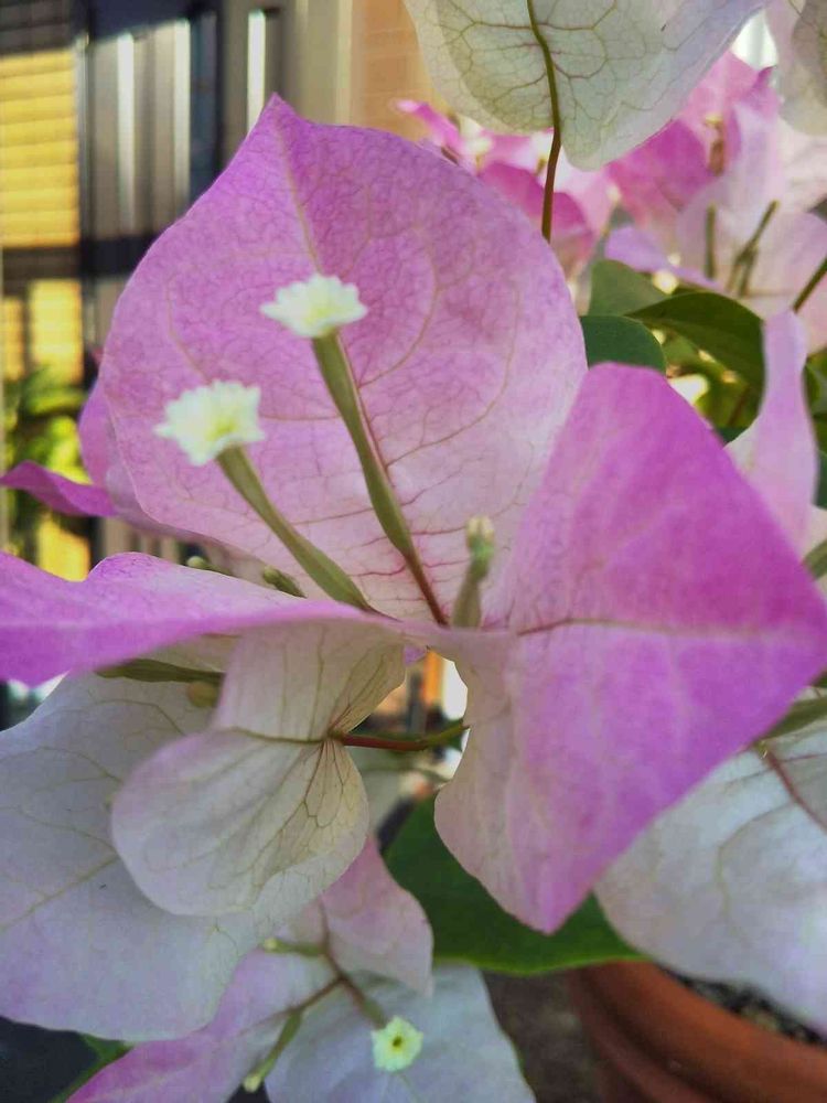 これブーゲンビリアですよね?こんな淡い色のもあるんですね〜☺️