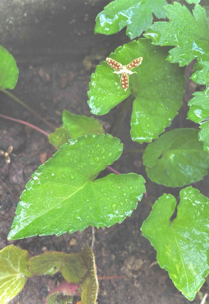 庭の片隅、ずっとホタルブクロの地下茎で発芽した子だと思い込んでいた葉っぱから