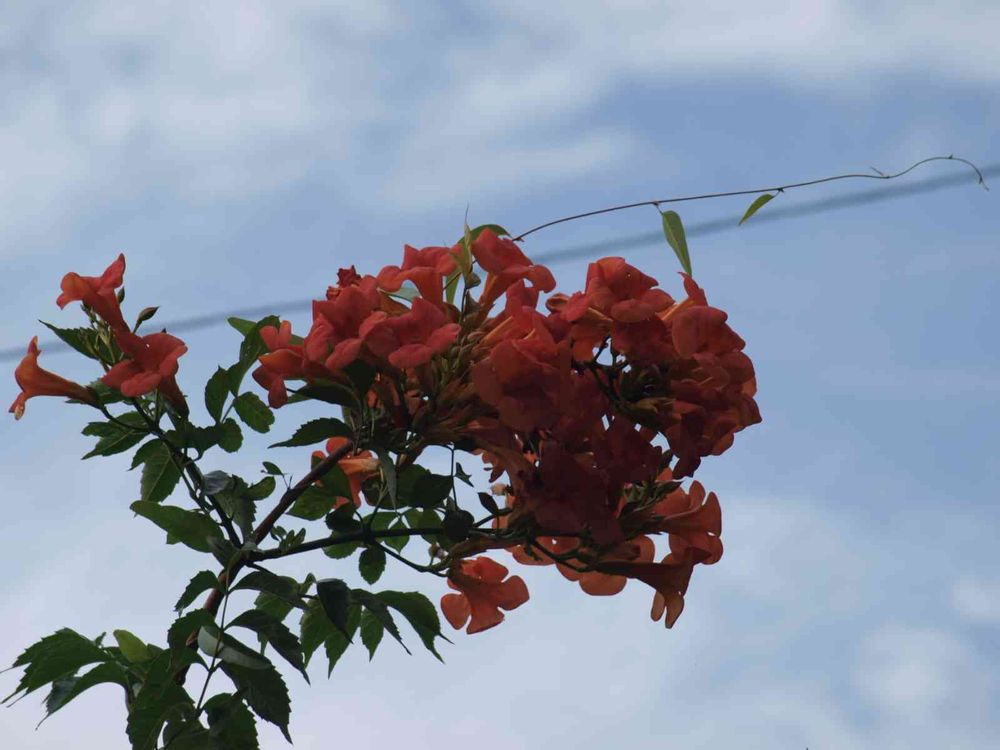ノウゼンカズラが咲いていました、少し色の濃い赤い花