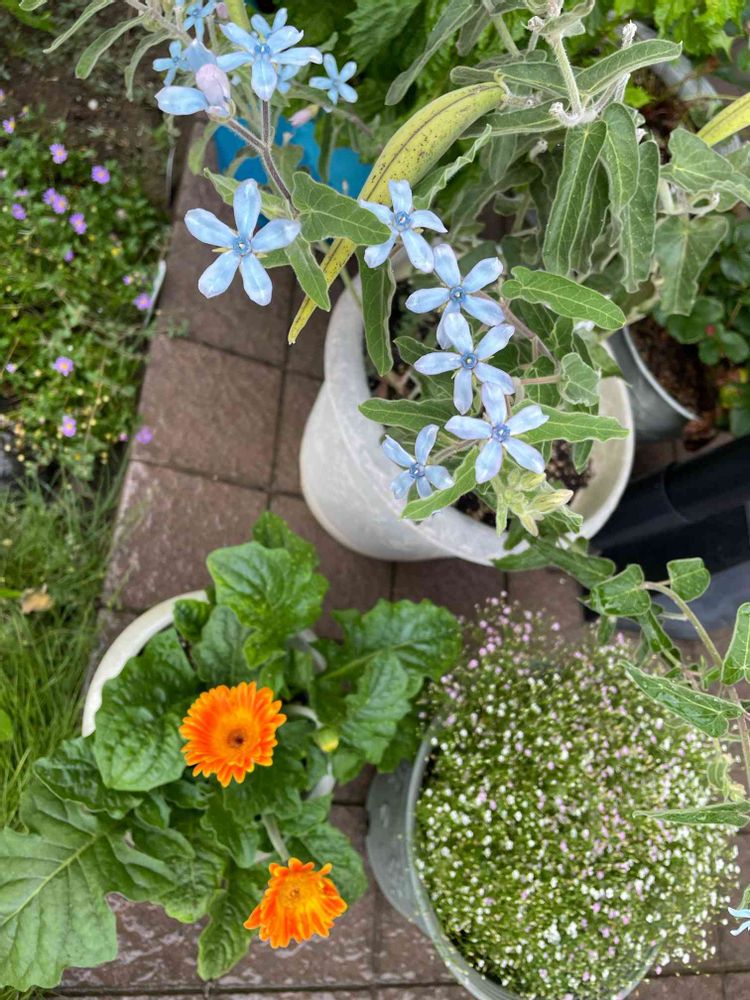 羽衣あられさんのガーベラ,オキシペラタム(ブルースター),かすみ草プレミアムジプシーの投稿画像