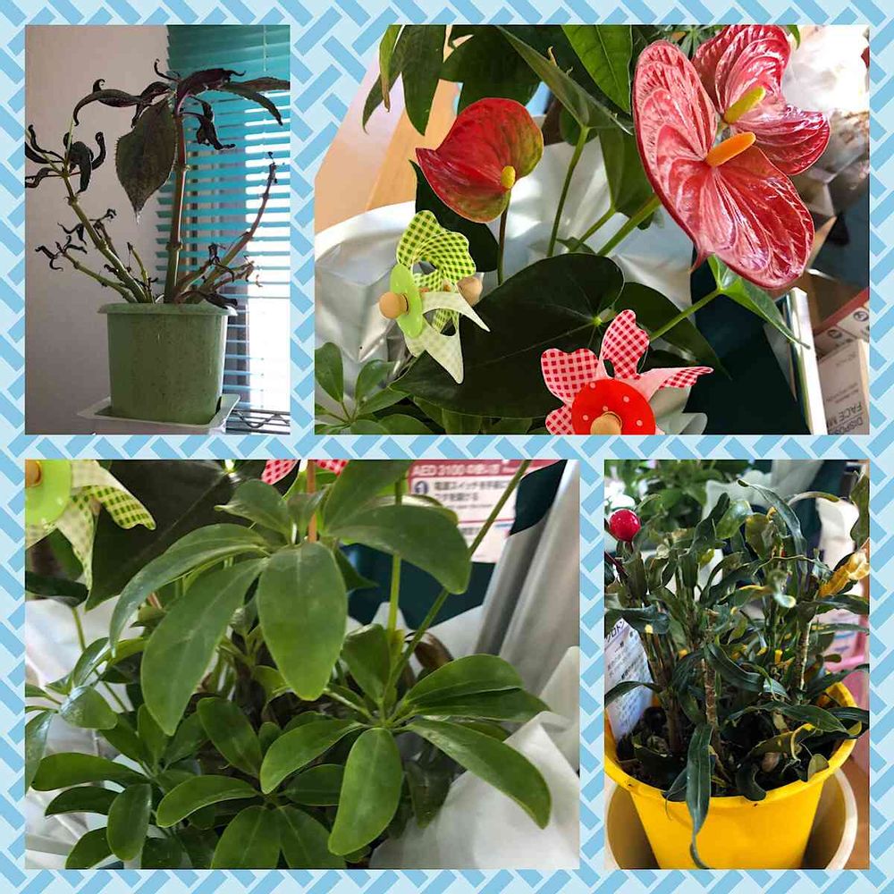 左上は連休で枯れかけたインパチェンスです。全部職場の観葉植物仲間です🪴