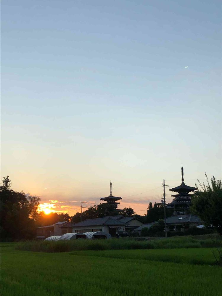 のんのんさんのお出かけ先,夕陽。,薬師寺の塔!の投稿画像