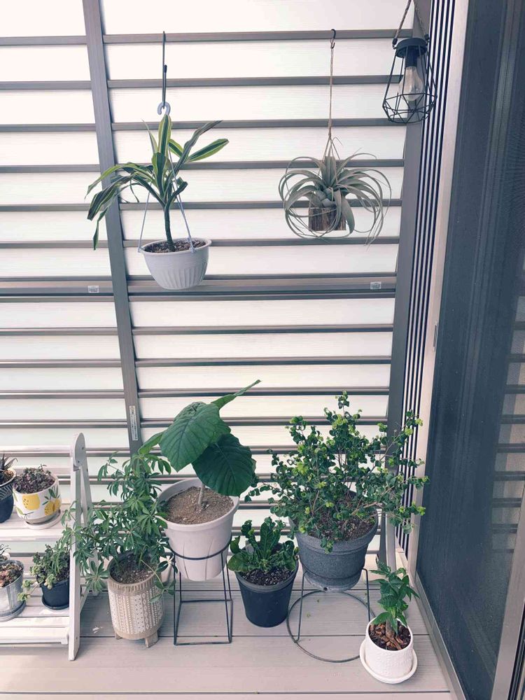 夏の間は屋根付きのウッドデッキに観葉植物たちは出してます◡̈⃝