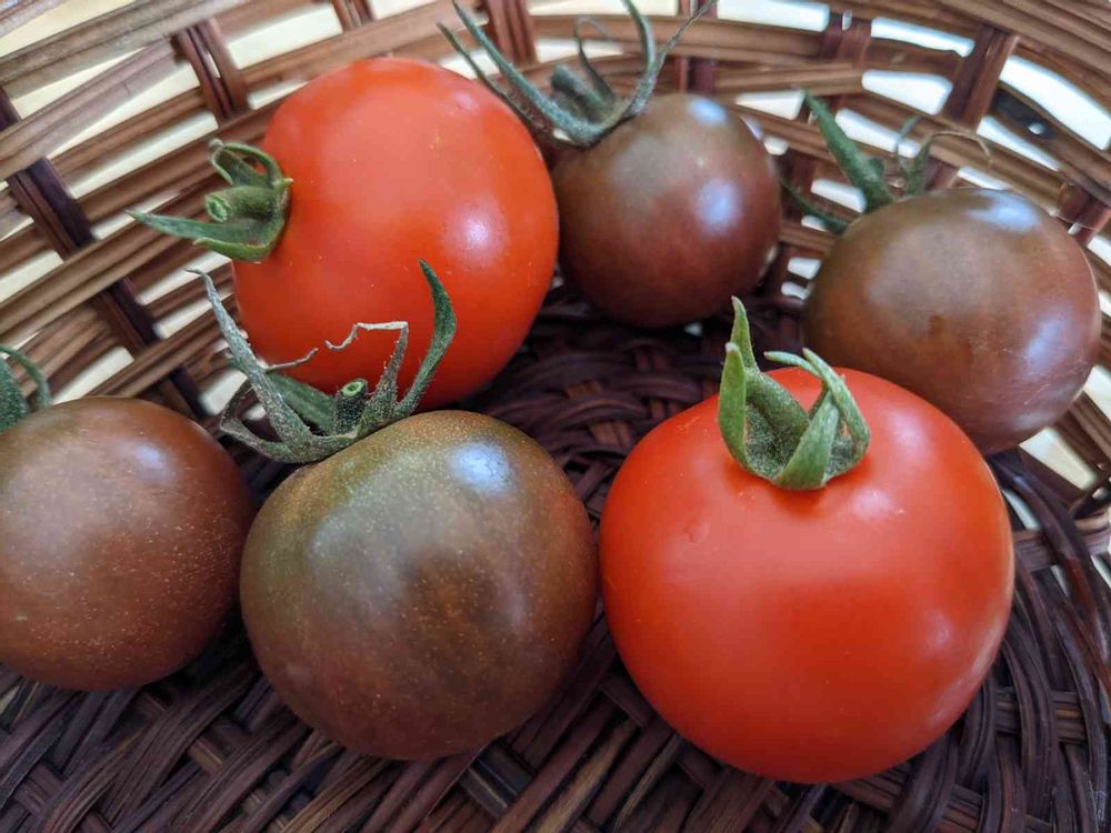 中玉トマトのフルーツルビーEXと、茶系トマトのリコピーナブラック。
