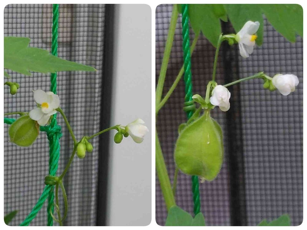 フウセンカズラ今年去年の教訓から受粉のお手伝いをしたら早くも2つの風船が膨らんできました🎈🙌