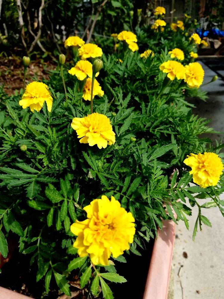 種から育てたので、大量に育ち、畑やプランターで黄色ちゃんが満開です。
