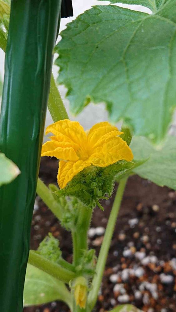 可愛い❤️キュウリ。暑さに耐えて、花を咲かせ、実がなれば