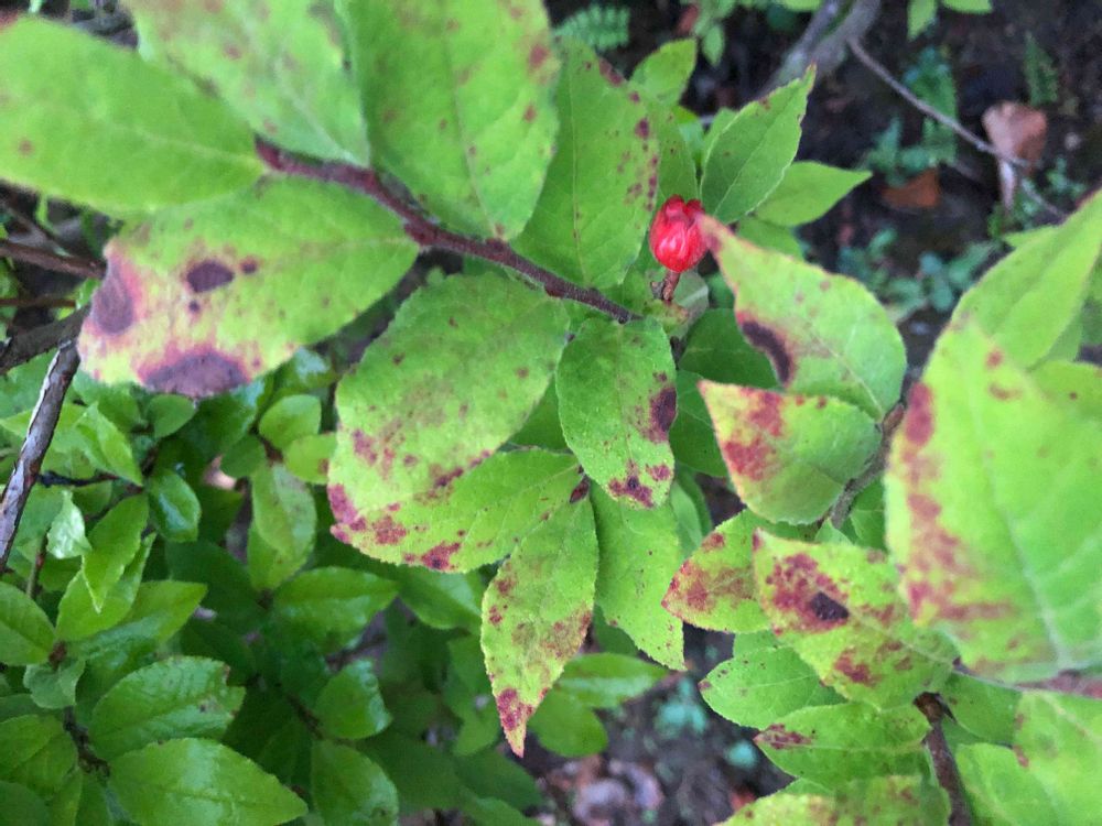 ここらでは「おわん」と呼ぶ、夏に赤くて酸っぱい実をつける山の低木です。