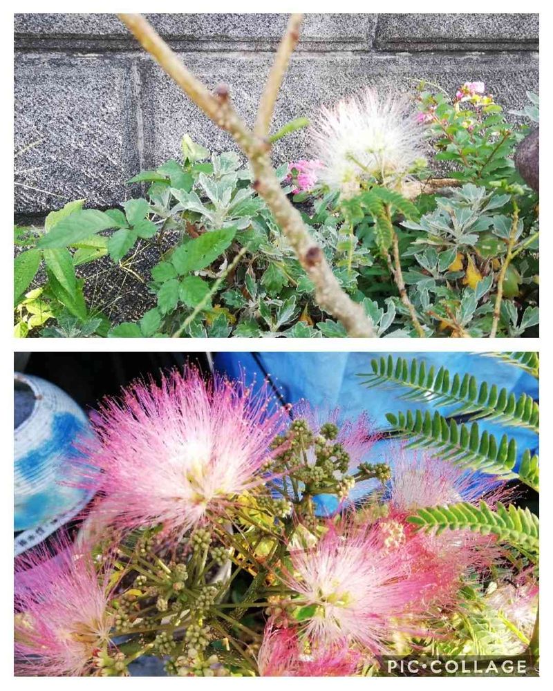 白とピンクのねむの木
